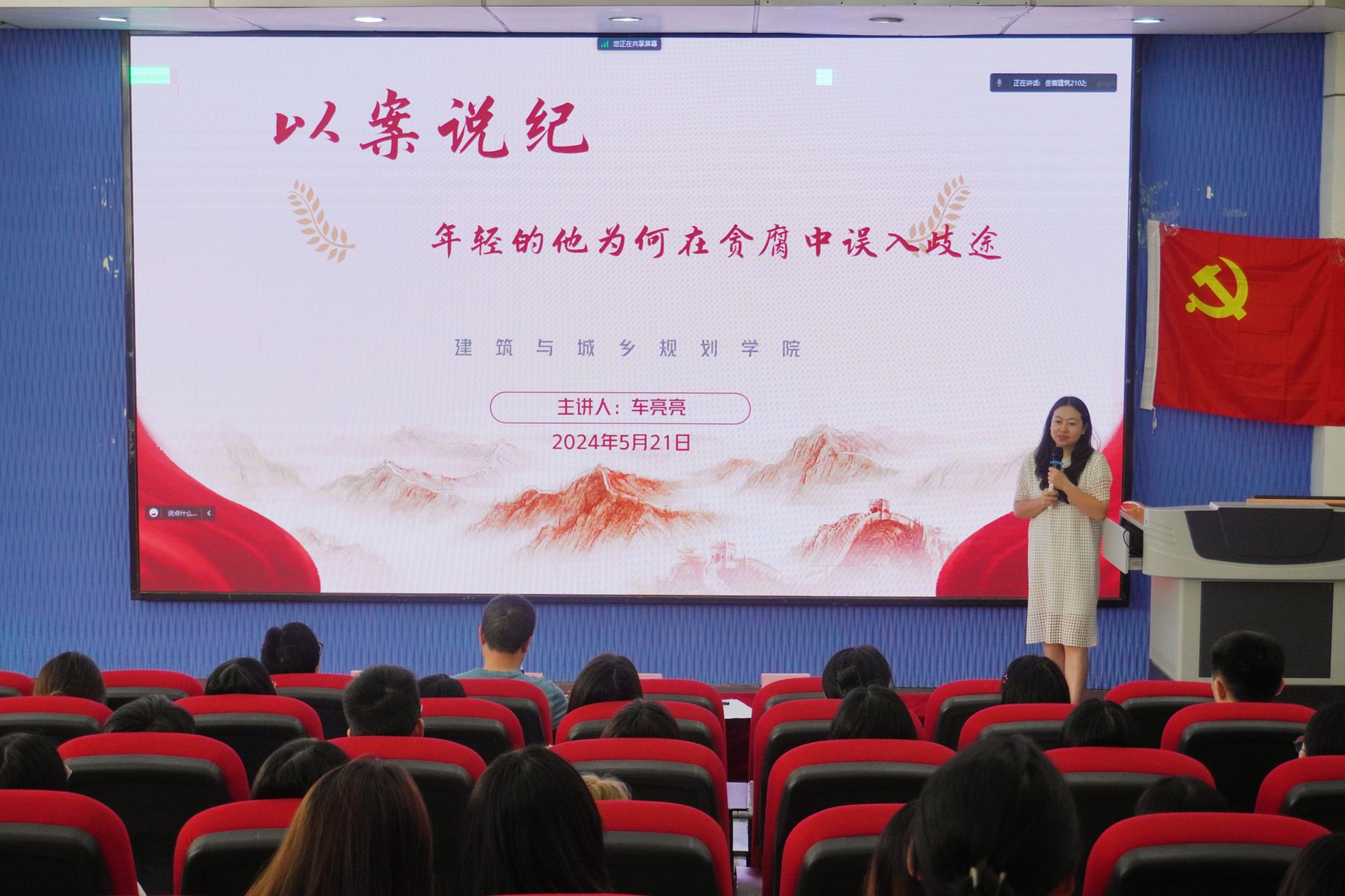 5月21日中午,建城学院于4101开展辅导员公开课第7季——《以案说纪——年轻的他为何在贪腐中误入歧途》,引领青年员工党员遵规守纪,扣好廉洁从业的第一粒扣子。学院纪委委员、教工党群支部书记、就业秘书车亮亮老师主讲,全院150余名员工党员参加。