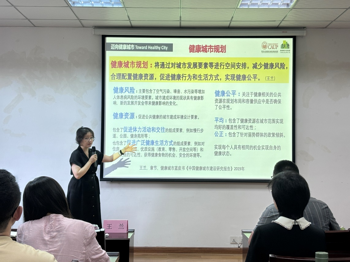 王兰从学科交叉建设的角度,结合丰富的实践案例,详尽阐述了健康城市的理论与实践研究、规划设计实践以及健康影响评估等方面内容,强调了健康城市机理路径在构建健康城市中的关键作用,重点分析了如何通过规划设计实践来优化城市空间布局以提升居民健康水平。在讨论交流环节,王兰与参会师生进行了积极互动,耐心解答了师生们关于报告内容、科研项目等的相关问题。讲座不仅丰富了学院师生在健康城市规划建设方面的相关知识,提供了健康城市理论和实践研究前沿的学习交流机会,也更进一步打开了学院师生在相关学术研究中的思路、拓宽了学术视野。