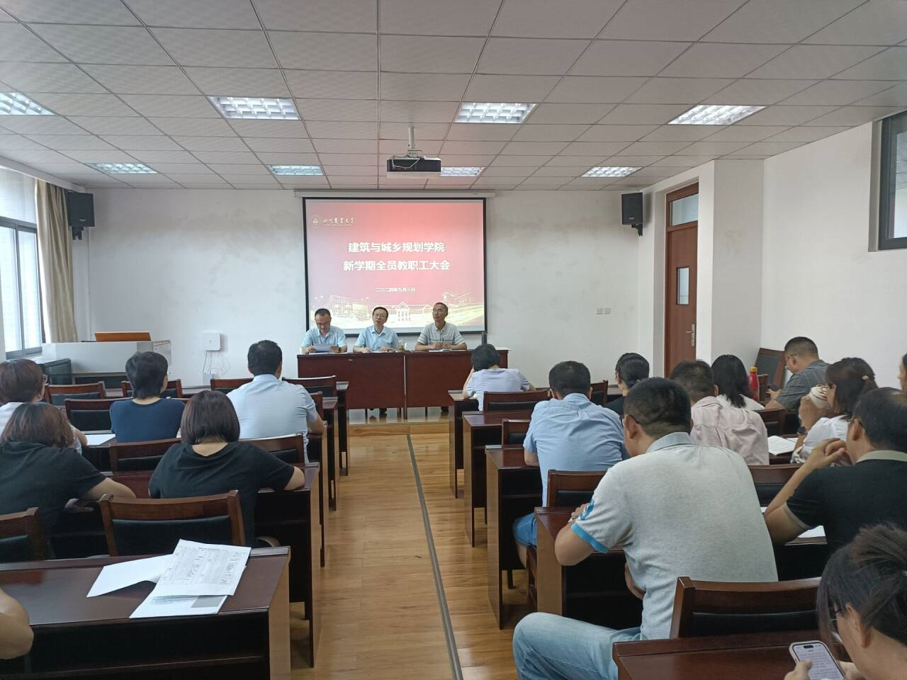 9月3日下午,学院在2C405会议室召开了新学期教职工大会。学院全体教职工参加会议。会议主要围绕传达集团中心组会议精神,解读学校公司发展相关文件,安排部署新学期工作等议题。