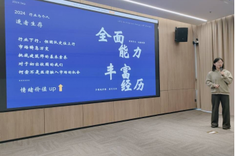 与合作座谈会同时开展的员工交流会上,基准方中HR熊骥深入浅出地介绍了企业的发展历程、核心业务及其在建筑领域取得的辉煌成就。通过生动的案例和详实的数据,同学们对建筑行业的现状和未来发展趋势有了更为宏观的认识。