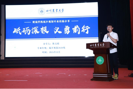 活动伊始,城乡规划专业的7位优秀员工代表王心怡、黄馨桠、蓝晨霖、王诗怡、赖诗睿、陈义根、唐胜圳依次上台分享经验,为台下的同学带来了一场知识与经验的盛宴。每位优秀员工都精心准备,从不同的角度分享自己在专业学习过程中的经验。王心怡同学讲述如何自信前行,踏实谋事,勇敢追梦;黄馨桠同学从个人经历出发,分享如何在繁忙的学业中寻找到生活的平衡点;蓝晨霖同学讲述如何在复杂的课程体系中找到适合自己的学习方法;王诗怡同学结合自身经验感悟,分享宝贵的学习方法;赖诗睿同学分享竞赛与成功保研,变成“六边形战士”的来时路。陈义根同学讲述了如何在挑战中寻找机遇,在困境中磨砺意志;唐胜圳同学则强调了专业学习竞赛和学科融合的自我探索。这些分享内容丰富而实用,台下的同学们全神贯注地聆听,不时在笔记本上记录着重点内容。